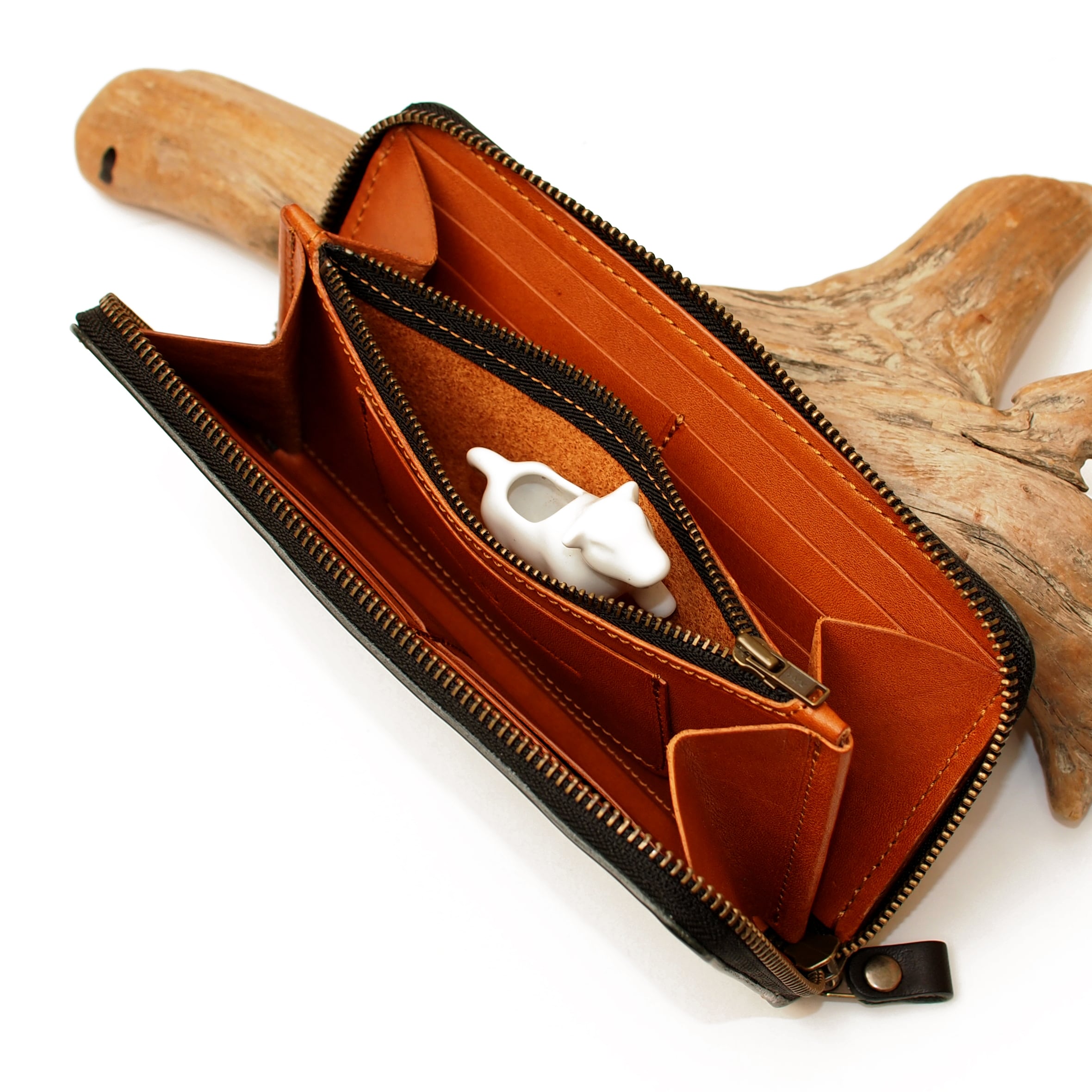高級感漂う栃木レザーで作られたラウンドファスナーロングウォレット。